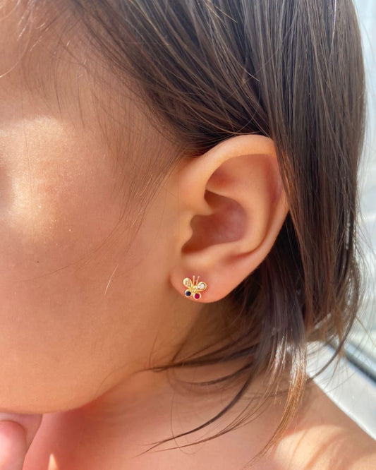 Topos Llaves Corazon 9mm, oro rosado 18k, broche mariposa
