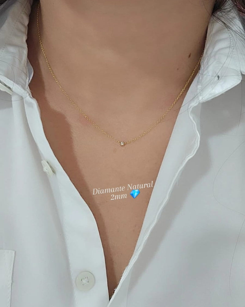 Cadena tipo gargantilla 40cm, con mini Diamante Natural 2mm