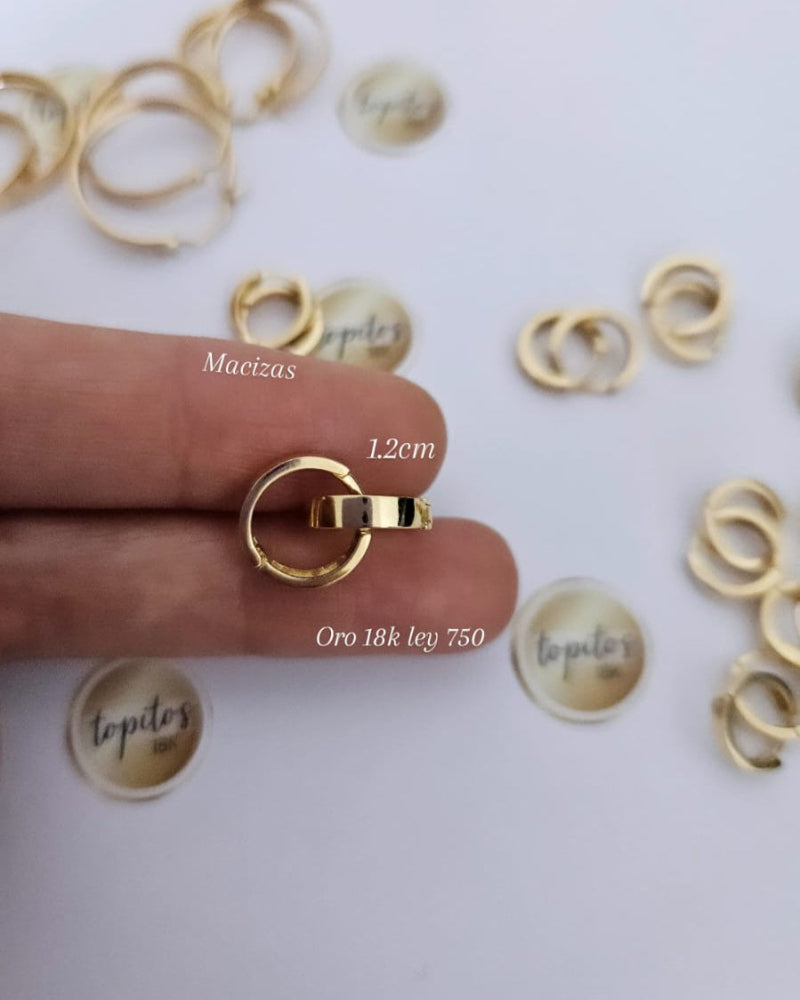 Candongas 1.2cm macizas lisas, ley 750 18k