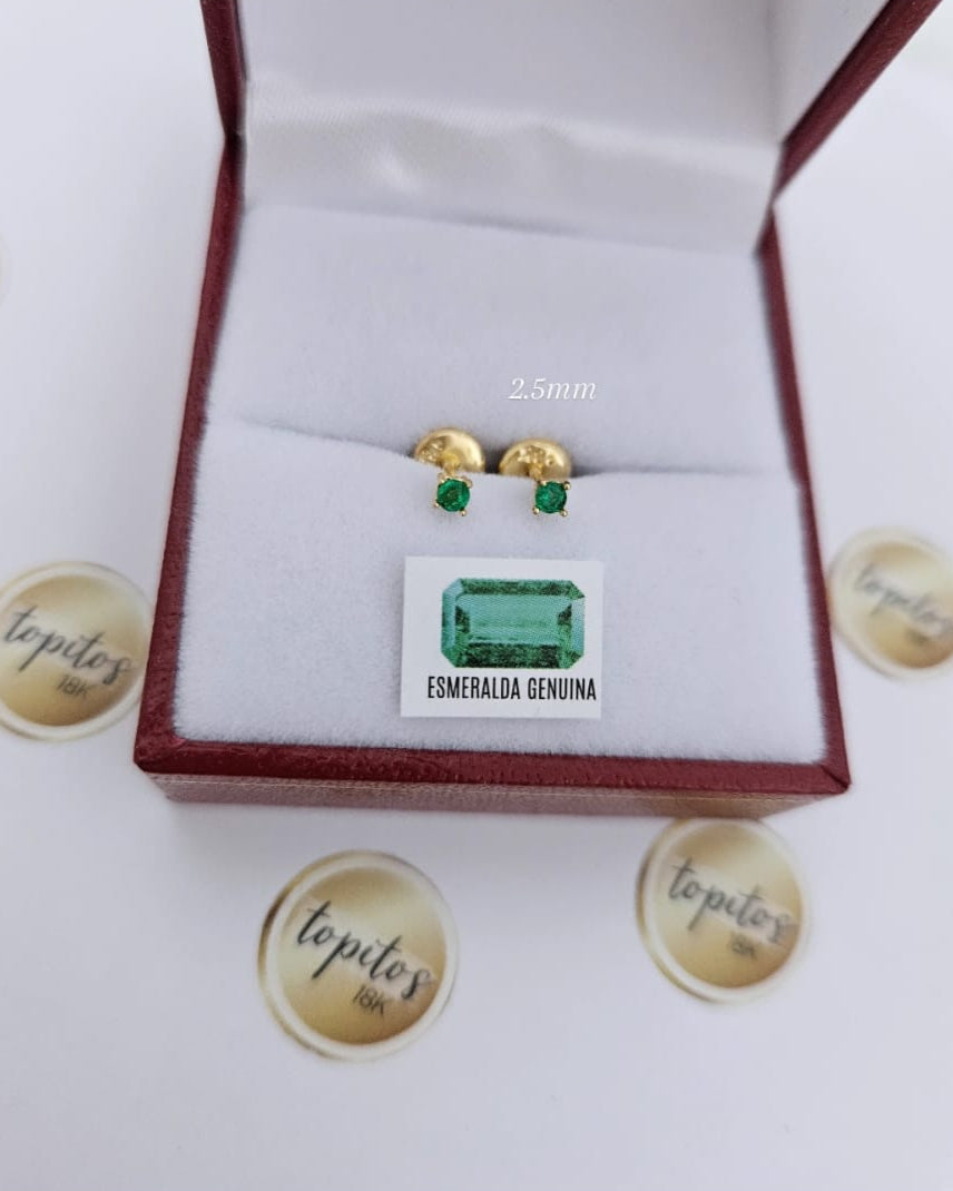 100% oro 18k garantizado, broche de seguridad, Esmeralda 2.5mm